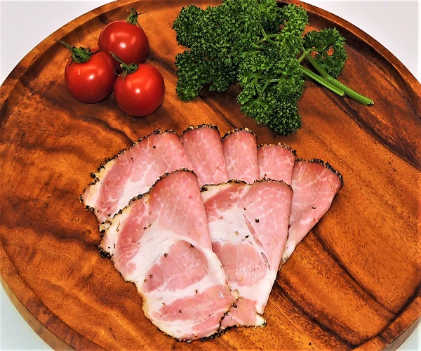 肩ロース肉を上質のペッパーで包み込んだハムです。