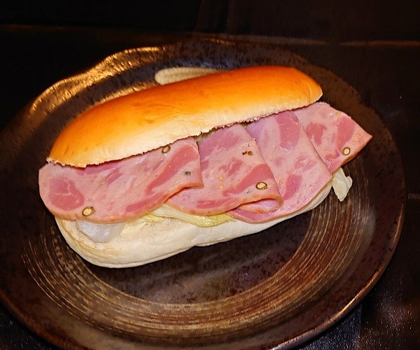 ハムをスパイスのやや強めな生地で包み込んだソーセージ。